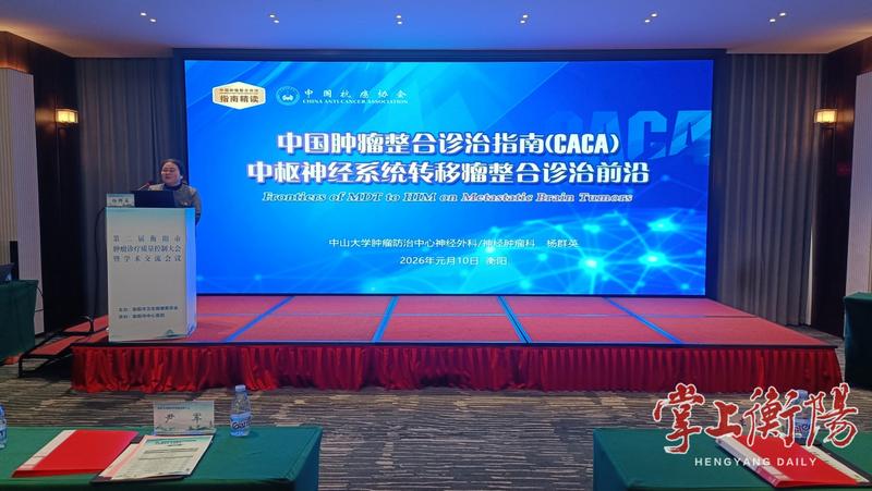 1月10日,衡阳市肿瘤质控中心年会顺利召开。衡阳市卫健委党组成员、副主任、市疾病预防控制局局长李小伟,市计生协会专职副会长蒋先媛,湖南省肿瘤医院副院长、省肿瘤质控中心主任黄钢,市中心医院院长、农工党衡阳市委会主委、市癌症防治中心主任尹军等领导出席开幕式。市中心医院党委委员、副院长倪幸主持开幕式。市中心医院肿瘤中心主任、市肿瘤质控中心主任李斌报告了肿瘤质控中心年度工作,规划了2026年度工作。