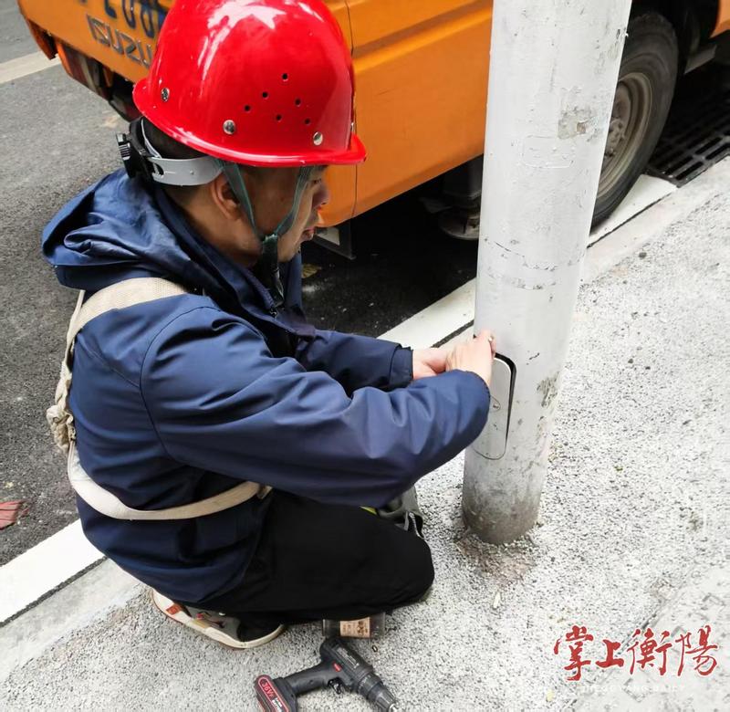 ▲工作人员检查灯杆底部的线路接口。