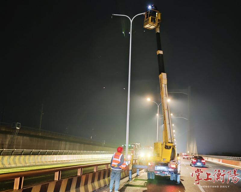 1月21日清早,雁峰区先锋街道爱民社区有居民来电反映:冻雨过后,巷子里的路灯“失明”了。市城市照明服务中心值班人员立即出动,赶往现场。巷窄路滑,抢修人员扛着梯子、拎着工具,在寒风里一段一段检查架空线路。“这儿覆冰太厚”“绝缘层有裂纹,得处理……”他们一边排查,一边互相提醒。三个多小时后,故障排除。当日傍晚5点35分,南三环路湘江三桥上发生交通事故,一基路灯被撞,灯具碎片散落桥面,形成照明暗区。市照明服务中心接到消息后,应急小队火速出发。应急队员赶到事发现场后,先设置安全区、引导车辆,随后断电、检查灯杆、清理碎片。高空作业车升起,维修员在寒风中稳稳操作,拆除损毁灯具,安装新的光源。晚上8时,桥面恢复照明。他们在冰冻的街巷与时间赛跑;蹲在路边检查线路,站在桥头守护通行。风雪中,他们的身影就是一束温暖的光。市城市照明服务中心提醒:市民如遇路灯故障,可拨打服务热线:0734—8192687。