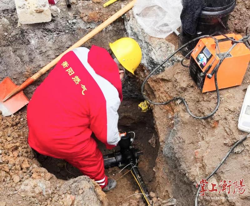 1月21日,衡阳城区气温骤降至零下,冻雨如针,寒风似刀,蒸湘区呆鹰岭镇振兴村大公组的作业现场,却是一番热火朝天的景象。市天然气公司工程部的“蓝焰卫士”们正俯身在冰天雪地里,全力推进燃气碰接工程项目,力争尽早为用户接通天然气,送去冬日里的温暖。