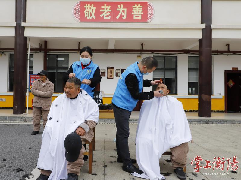 ▲志愿者为老人免费理发。