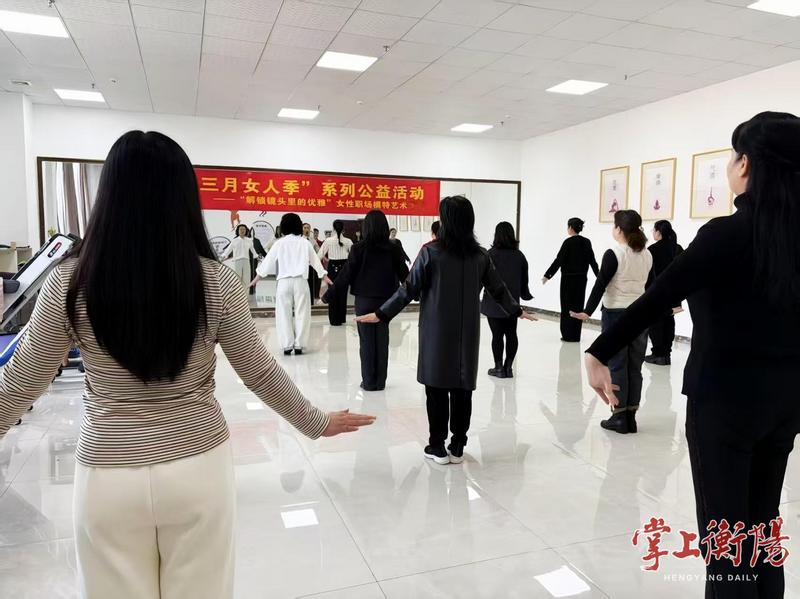 音乐响起,抬头、挺胸、微笑……女职工们一步一步,越来越自信,踩着节拍,在走秀中展现柔美与力量的风采。