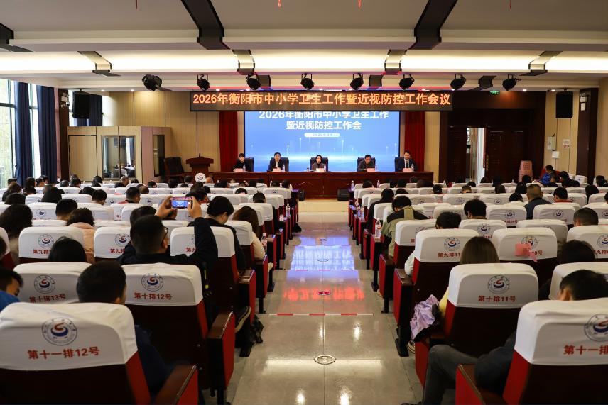 为进一步贯彻全市教育大会精神,落实《衡阳市推进基层教育高质量发展若干措施》"推进学生近视防控工作,力争近视率逐年下降"的任务清单,3月24日上午,2026年衡阳市中小学卫生工作暨近视防控工作会议在市船山实验中学召开。会议全面总结2025年卫生工作情况,安排部署2026年工作,通报了各县市区和市直学校学生近视率情况。