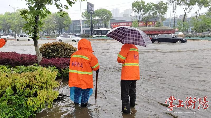 近日,衡阳市遭遇强降雨天气,雨势猛、强度大,对城市交通和市民出行造成一定影响。雨情就是命令,市住建局第一时间启动排水防涝应急预案,市政公司、道路公司全体人员迅速进入应急状态,以最充分的准备、最有力的措施,全力投入到防汛抢险工作中。