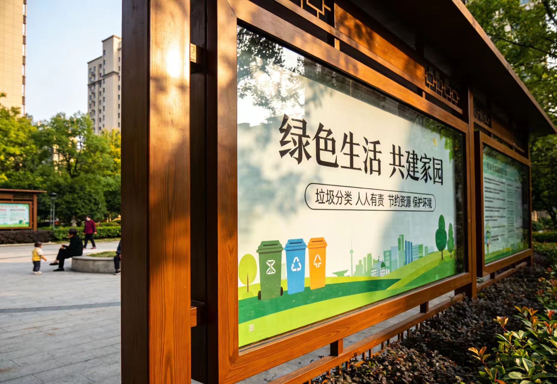 回收物、有害过圾、厨余垃圾(餐厨垃圾、家庭厨余垃圾和其他厨余垃圾)、其他垃圾"四分类标准,依次按照蓝、红、绿、黑四种颜色分别标识垃圾桶站、垃圾箱房等投放设施,新增投放400个新垃圾桶,用于替换破损、优化布局。除上述四大类外,因地制宜对大件垃圾、建筑垃圾、易腐垃圾等实施源头分流减量,单独分类、独立处理,提高资源化利用效率,减轻生活过报终端处置设施负担。