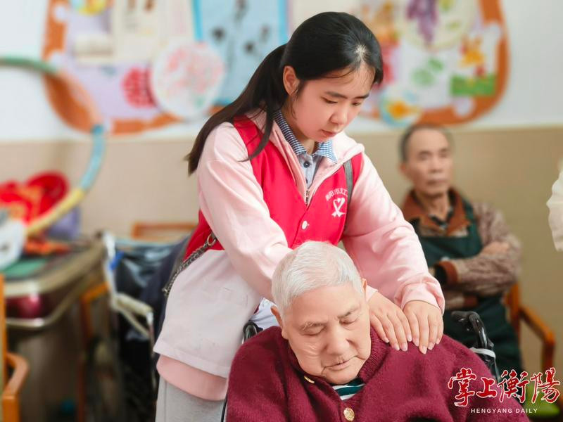 ▲志愿者为老人按摩。