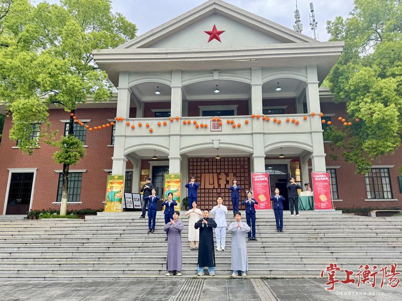活动在青年学生编排的《心社故事》快闪舞台剧中开场。身着近代学生装的青年演员,分别再现了青年毛泽东1921年第一次来衡阳的场景,以及蒋先云、黄静源等心社青年创办进步刊物、传播新思想的峥嵘岁月。