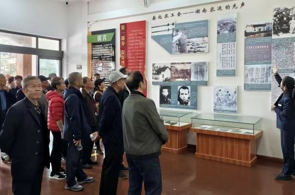 走进衡山农民运动纪念馆,这里曾是大革命时期中共衡山地方工作委员会驻地,也是毛泽东同志当年考察衡山农民运动、撰写《湖南农民运动考察报告》的重要地点。在讲解员的引导下,老同志们在一件件饱经沧桑的文物、一幅幅定格历史的照片前驻足凝视,系统回顾大革命时期衡山农民运动从兴起、发展到壮大的光辉历程。深切缅怀革命先烈不畏强暴、敢于斗争的英雄气概,深刻感悟到“农村包围城市”革命道路的艰辛与伟大。