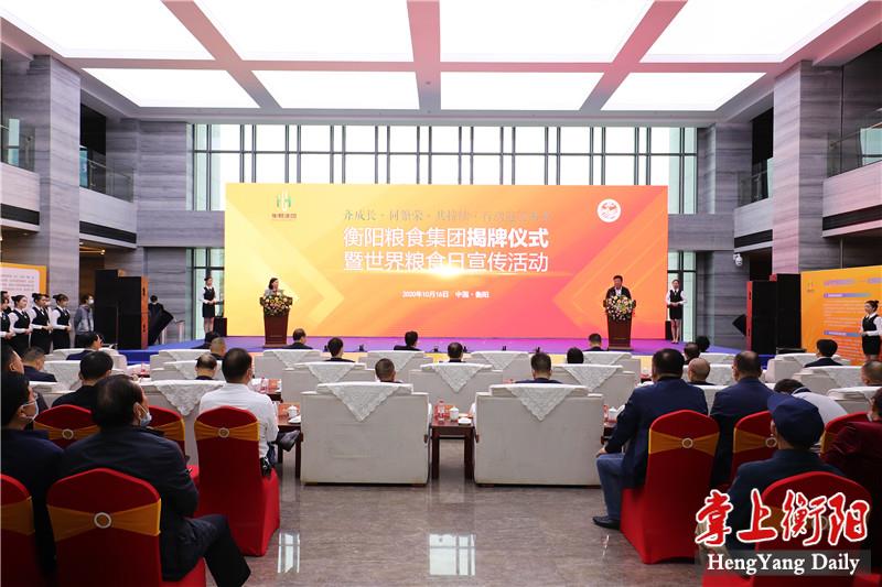 10月16日是世界粮食日。10月16日上午,衡阳粮食集团有限责任公司在衡阳高新区创新中心正式揭牌。市委书记邓群策出席揭牌仪式,市委副书记、市长朱健致辞,并共同触摸显示屏,为衡阳粮食集团有限责任公司揭牌。