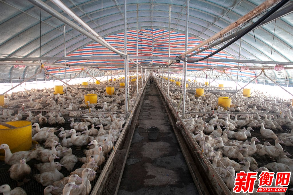 ▲养鸭大棚里,2万只肥硕的肉鸭为村里带来集体收益