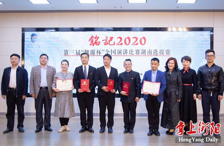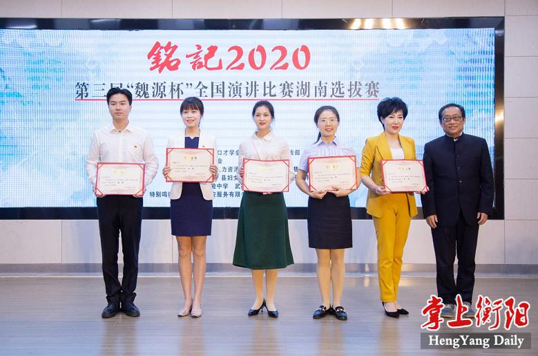 据了解,这次选拔赛由省演讲与口才学会、衡东县委宣传部主办。比赛共评出金奖5名,银奖6名,铜奖7名。获得金奖的五名选手将于11月上旬代表湖南参加在湖南隆回举行的第三届“魏源杯”全国演讲大赛总决赛。