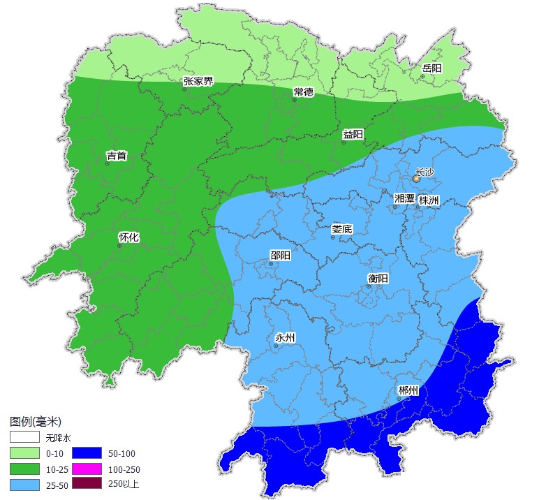 ▲湖南降水量预报(2月9日20时~2月10日20时)