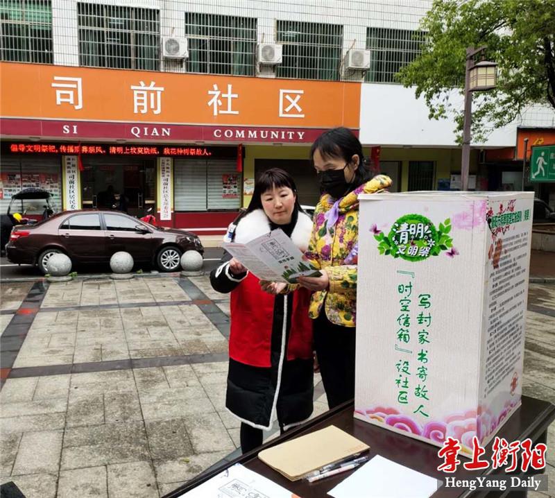 “发放一份倡议书”:即以“文明低碳祭扫、传承孝道文化”为主题,印发《衡阳市2021年清明节文明低碳祭祀倡议书》4万余册,向市民积极倡导移风易俗,让“文明祭祀”“厚养薄葬”等观念深入人心。