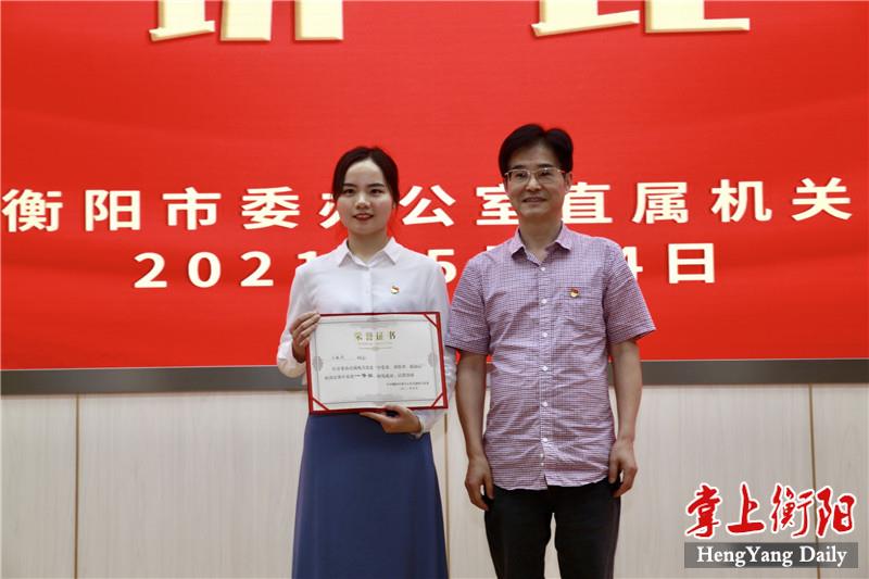 ▲市委办机关五支部黄婧、市委办机关七支部黄玉国获得演讲比赛二等奖