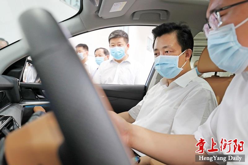▲秦国文在祁东归阳工业园体验新能源汽车