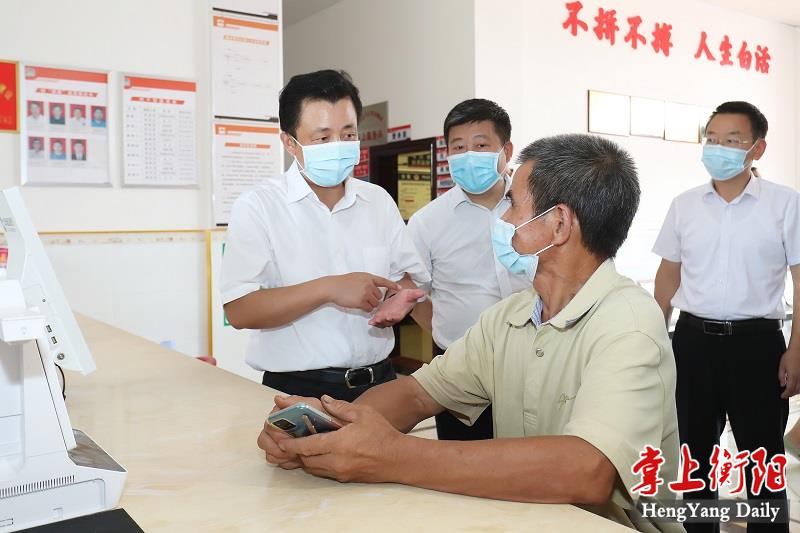 ▲秦国文深入鸟江镇金槐村调研“一门式”服务、乡村振兴等工作