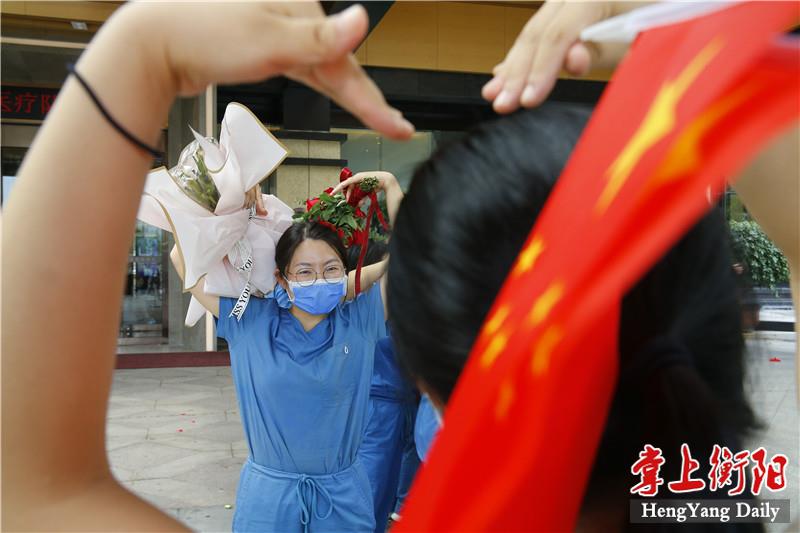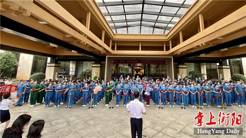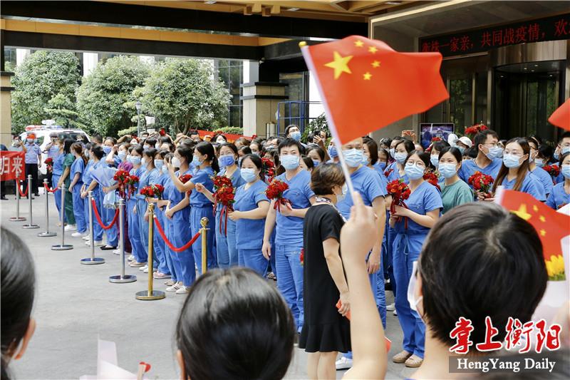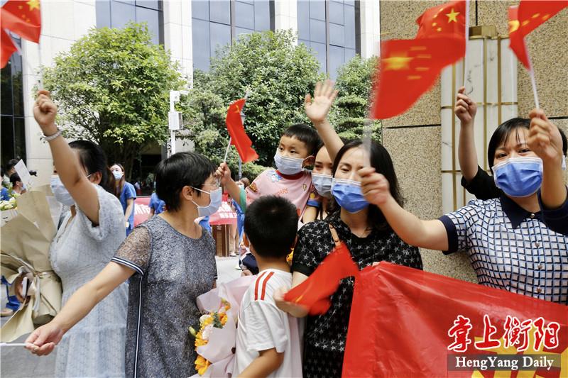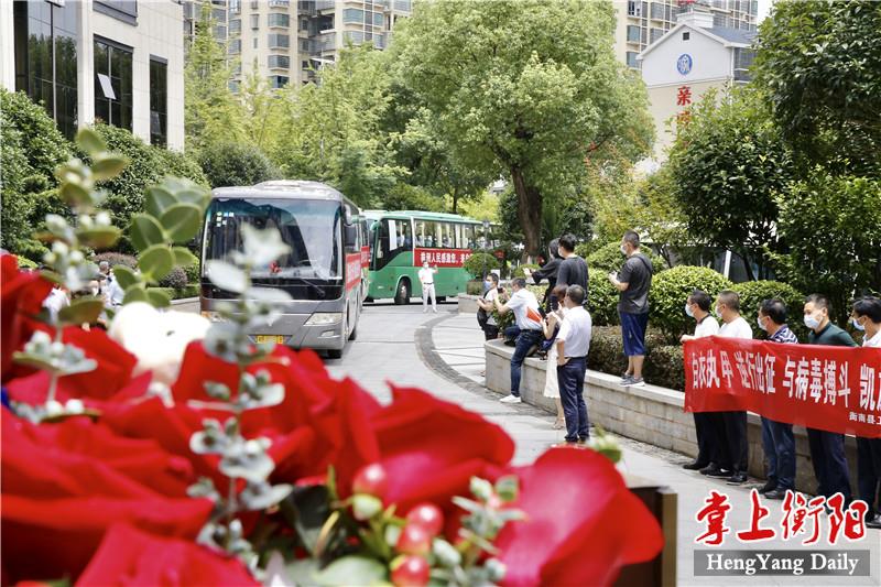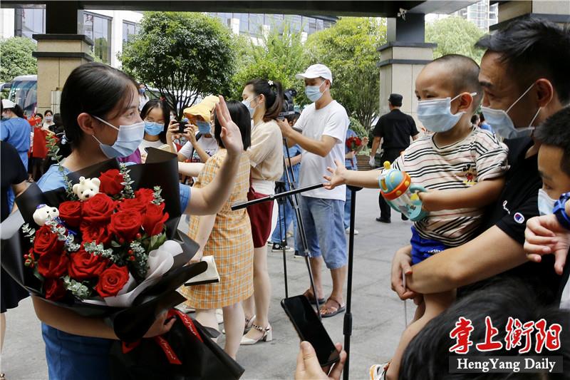 “欢迎英雄回家!”8月12日,衡阳支援株洲医疗队圆满完成任务,平安返回衡阳。中午12时许,医疗队员们乘坐的大巴车缓缓开进定点隔离酒店,衡阳市民、医疗队员的亲人同事纷纷驻足在道路两旁,向凯旋的医疗队员们挥手致敬。