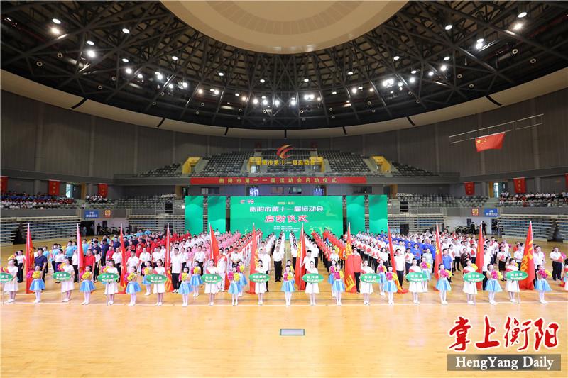 启动仪式现场, 衡南县、衡阳县等13个代表团依次入场,有序列队。随后,全体起立,奏唱中华人民共和国国歌。在运动员代表、裁判员代表庄严宣誓后,秦国文宣布衡阳市第十一届运动会开幕。
