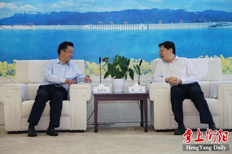 韩君对秦国文一行的到来表示热烈欢迎,并简要介绍了三峡集团的发展情况。他表示,三峡集团肩负党中央赋予的新时代使命任务,在推动长江经济带发展与共抓长江大保护中发挥了重要作用。衡阳区位优势明显,辐射带动力强,境内水资源丰富。三峡集团将坚定信心决心,继续加强与衡阳市在水环境综合治理、发展清洁能源等领域开展全方位战略合作,共同推动高质量发展。