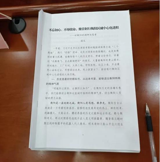 最近,一份署名“国文”的调研报告《不忘初心、不辱使命,俯首躬行衡阳区域中心化进程——对衡阳的调研与思考》,在市人大常委会机关干部和市人大代表中引发好评和热议。