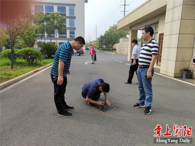 ▲专家查看下水道是否采取病媒生物防制措施情况