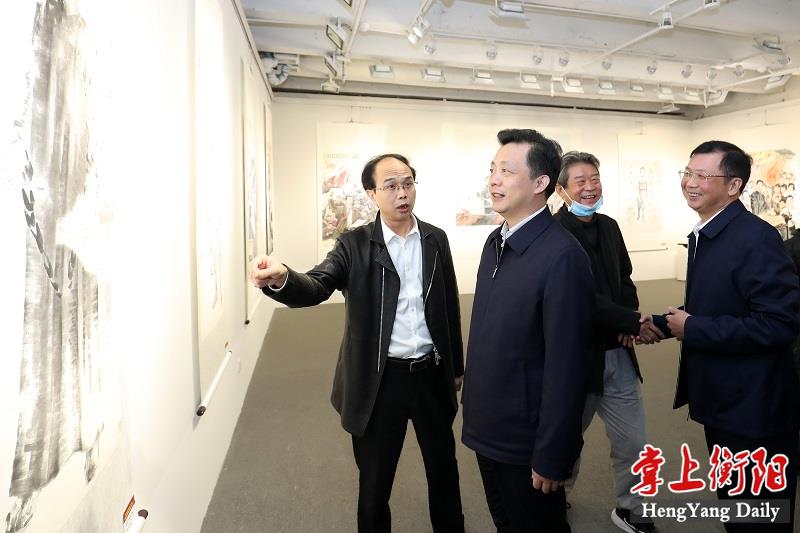 随后秦国文、夏义生等领导还参观了壹号美术馆的“衡阳红色群英谱”美术作品展。据悉,该展览共展出美术作品25件,创作内容主要围绕一百年来,在衡阳这片热土涌现的英雄人物和红色故事,讴歌党的丰功伟绩,传承党的红色基因。