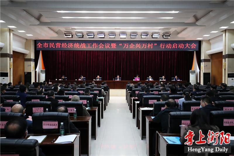 会议发布了“万企兴万村”行动启动倡议;市领导胡绪阳宣读《关于成立衡阳市非公有制经济工作领导小组的通知》;市领导谢明芳宣读《衡阳市服务民营企业10条措施》。