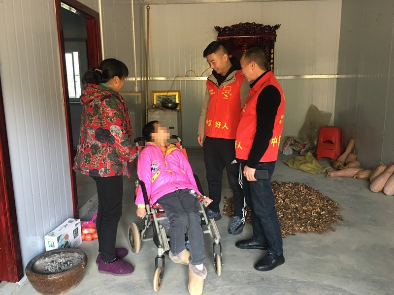 ▲“中国好人”向文韬、武国水走访慰问4名困难学子和杨林镇一户残疾人家庭。