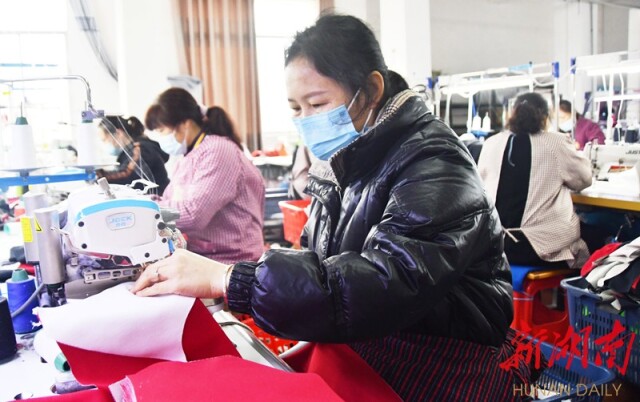 ▲3月27日,江永职中民族服饰开发有限公司,员工在赶制订单产品。田如瑞摄