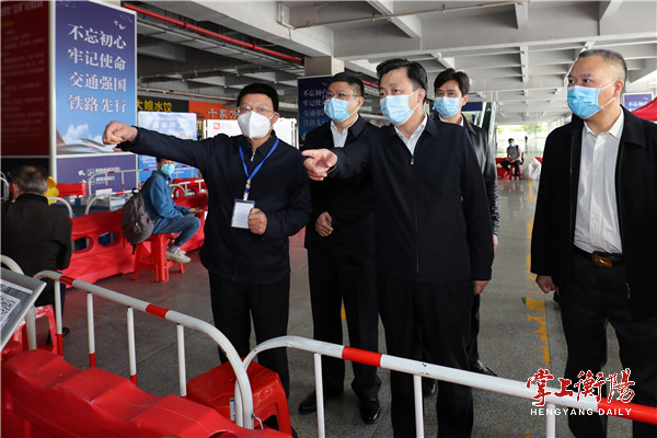 ▲秦国文在高铁衡阳东站暗访疫情防控工作