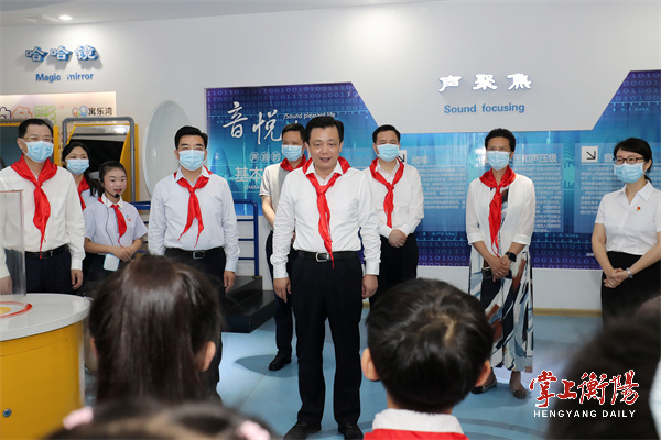 来到高新区衡州小学,少先队员们向秦国文一行敬献了红领巾,并看了以“七彩童年、缤纷‘六一’”为主题的书画展。学生们用泥塑、素描、油画、书法等形式,展现了自己缤纷多彩的童年时光,秦国文为大家的想象力和创造力点赞。在衡州小学“喜迎二十大,争做好队员”新队员入队仪式现场,他见证了60名新队员代表加入中国少年先锋队,他们面向队旗庄严宣誓,立志时刻准备着:为共产主义事业贡献力量。随后,秦国文还参观了该校科技馆和班级嘉年华活动,与学生们一起交流互动,并为学生们送去了水彩画笔等节日礼物,愿他们用多彩的画笔描绘出色彩缤纷的精彩人生。