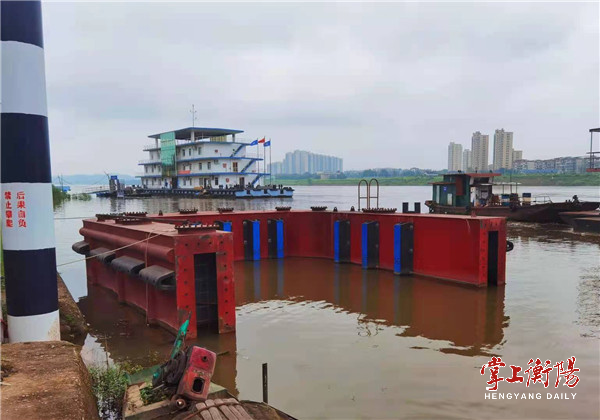 ▲桥梁防撞墩已被拖曳至杨家坪一号码头旁。