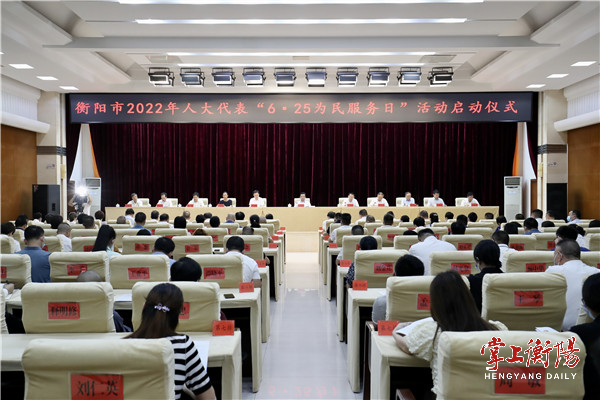 6月24日上午,衡阳市2022年人大代表“6·25为民服务日”活动启动仪式举行,全市五级人大代表和市、县、乡三级人大工作者一起出发,把服务送到人民群众身边去。市委书记秦国文宣布活动启动并强调,全市各级人大代表要深入学习贯彻习近平总书记关于坚持和完善人民代表大会制度的重要思想,始终践行代表初心,切实发挥代表优势,充分展现代表风采,把为民服务做到群众的心坎上。
