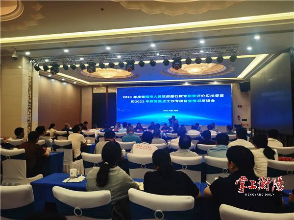 7月4日,2021年度衡阳市人民政府履行教育职责评价实地督查和2022年教育重点工作专项督查情况反馈会在林隐假日酒店多功能厅召开。省督查组副组长张毅龙反馈督查意见,副市长谢宏出席并作表态发言。