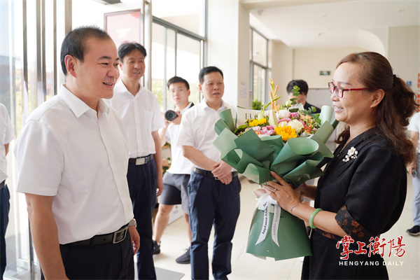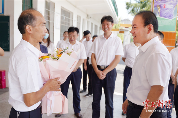 朱健先后来到珠晖区第二中学、衡阳市铁一中学,慰问教师代表肖凌和张智敏,详细了解他们的生活状况以及待遇保障、教学工作情况,对他们扎根衡阳教育事业30年来的辛勤付出和不懈努力表示感谢。希望大家以更加饱满的热情立足三尺讲台、潜心教书育人,争当新时代有理想信念、有道德情操、有扎实学识、有仁爱之心的“四有”好老师。市委、市政府将一如既往地重视和支持教育事业,认真学习贯彻习近平总书记关于教育的重要论述,以更大的决心、更优的政策支持教育事业发展,不断扩增优质教育资源供给,努力从各个方面保障广大教师安心从教、热心从教、舒心从教、精心从教,把衡阳基础教育品牌擦得更加亮丽。