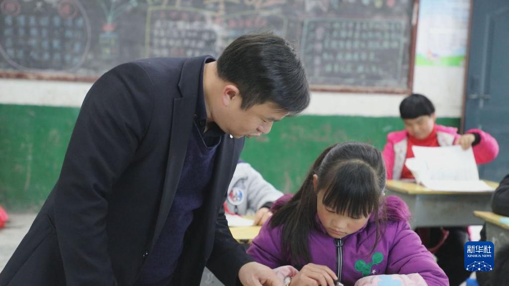 ▲在湖南省常宁市塔山瑶族乡中心小学,盘玖仁在课堂上辅导学生(2021年11月25日摄)。新华社发(尹明摄)