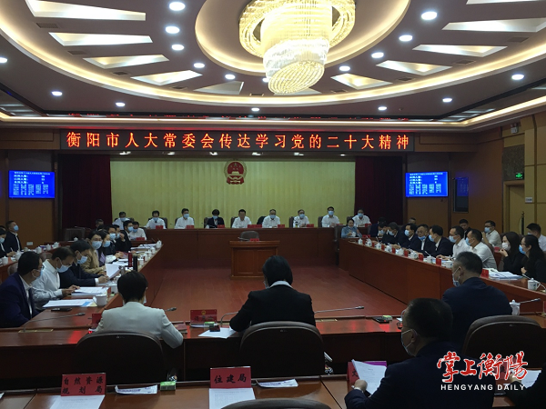 会议强调,要以党的二十大精神指导人大工作,努力把学习成果转化为推动人大工作的强大动力和实际行动。要把学习宣传贯彻党的二十大精神与贯彻落实中央、省委、市委人大工作会议精神有机结合起来,深入推进发展全过程人民民主的衡阳实践,努力开创全市人大工作新局面,为加快衡阳中心化进程、实现衡阳高质量发展贡献人大力量。