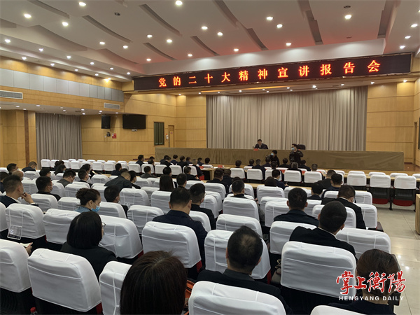 在耒阳市,李民结合自身学习体会,从党的二十大的主题、过去5年的工作和新时代10年的伟大变革、马克思主义中国化时代化、中国式现代化、全面建设社会主义现代化国家的目标任务、坚持党的全面领导和全面从严治党、全面发展协商民主等方面进行了宣讲。李民指出,学习宣传贯彻党的二十大精神,要紧密结合自身实际,紧密结合工作岗位,把党的二十大精神落实到实践中、贯彻到具体工作中、体现在成效上。