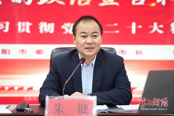 朱健强调,常宁市要牢牢把握高质量发展这个首要任务,进一步明确跻身全省经济“十强县”的时间表、施工图,率先形成“两个园区”经济发力点,做大做强民营经济,加快推进新型城镇化建设,全面深化改革开放,不断开创县域经济发展新局面;牢牢把握加快乡村振兴这个战略部署,奋力谱写新时代山乡巨变;牢牢把握改善民生这个出发点,奋力实现衡阳人民对美好生活的向往;牢牢把握团结奋斗这个时代要求,锤炼干事创业过硬本领,打造风清气正的政治生态,推动各项工作取得新成效、迈上新台阶。