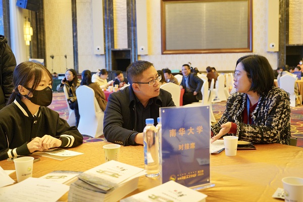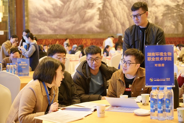 洽谈桌前,博士们仔细浏览用人单位简介和岗位需求信息,用人单位相关工作人员热情讲解本单位及岗位需求信息和博士们关心的其他情况。双方友好交谈后,不少博士当场与用人单位达成初步就业意向。