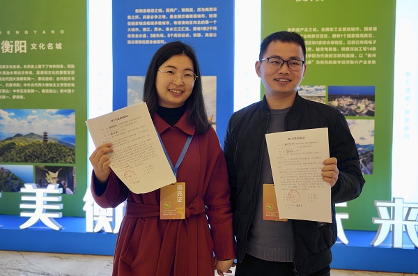 洽谈现场,一对湖南大学物理学博士情侣吸引了记者的目光,蒋星星是衡阳衡南人,谭洁瑶是广东清远人,因为家乡情怀和衡阳高含金量的人才引进政策深深吸引了他们,最终选择到衡阳师范学院任教。