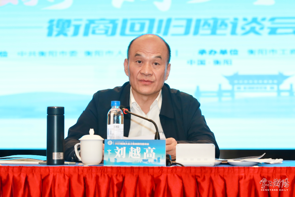 刘越高说,大家魂牵梦萦的家乡衡阳是块兴业宝地,衡商回归大有可为。希望大家多投资家乡,积极引领产业回归、项目回投、资本回流、人才回聚、总部回建;多回馈家乡,为家乡建设添砖加瓦,将浓浓思乡之情化为绵绵助乡之力;多宣传家乡,为家乡招商引资、招才引智积极牵线搭桥铺路,推动更多好项目、大项目落地衡阳,推动更多人才建设家乡。