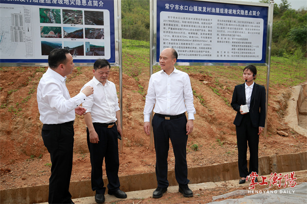 在水口山镇双发村油屋组滑坡地质灾害隐患点,刘越高详细了解了隐患点治理情况。他强调,当前已进入汛期,各级各部门务必保持如履薄冰的高度警觉,把安全度汛作为民生大事发展要事,进一步提升地质灾害监测预警能力,加强地质灾害综合治理,加大群众宣传和防灾演练力度,全力保障人民群众生命财产安全。