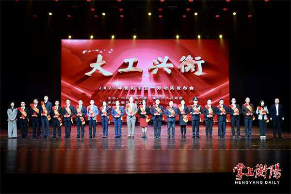 4月25日下午,“大工兴衡”——2023衡阳市五一劳动奖发布会在衡阳文化艺术中心举行,表彰一批先进集体和个人。市委书记刘越高,湖南省总工会党组成员、副主席宋峥嵘分别致辞,市委副书记、市长朱健出席,并共同为劳模代表颁奖。