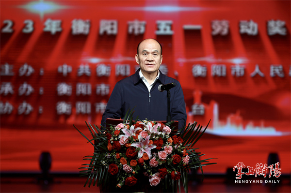刘越高向广大干部职工、劳动群众致以节日问候,向受表彰的先进集体和个人表示热烈祝贺。他说,2023年是贯彻落实党的二十大精神开局之年,也是我市加快推进区域中心化进程的攻坚之年,历史赋予衡阳新的使命,时代召唤广大劳动者谱写新的奋斗篇章。他号召全市广大职工群众共同奏响“劳动光荣”最强音,大力弘扬劳模精神、劳动精神、工匠精神,树立辛勤劳动、诚实劳动、创造性劳动的理念,练就干事创业真本领。各级各部门要大力弘扬“创造伟大”主旋律,不断深化产业工人队伍建设改革、构建产业工人技能提升体系、搭建劳动群众建功立业载体,让劳动者的创业干劲、创新才能在“制造立市、文旅兴城”的生动实践中充分涌流。各级工会组织要用心构建“共建共享”新格局,落实和保障好广大劳动者各方面合法权益,不断提高劳动人民的获得感、幸福感、安全感。
