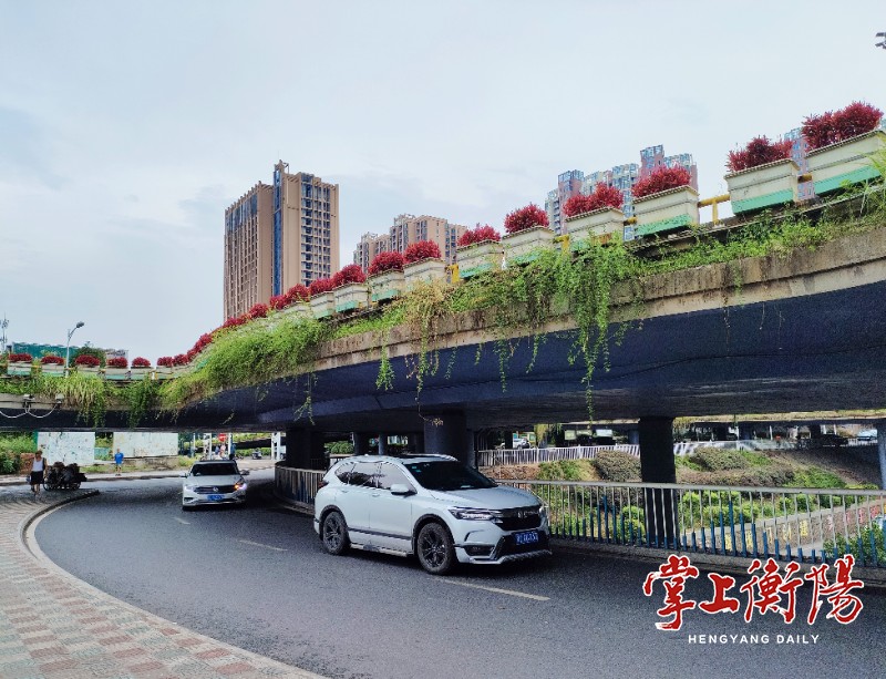 ▲立交桥“穿”上漂亮“花衣”,清新靓丽。