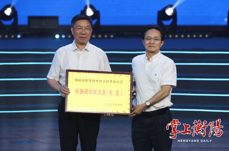 活动现场还发布了湖南省青少年航空航天科学素养提升专题课,并为第十二届湖南省青年科技奖获得者颁奖,为被国家乡村振兴局、中国科协聘为第一批产业顾问组的专家颁发了聘书,为南岳区颁发了“省科普研学(旅游)试点县(市)区”牌匾。