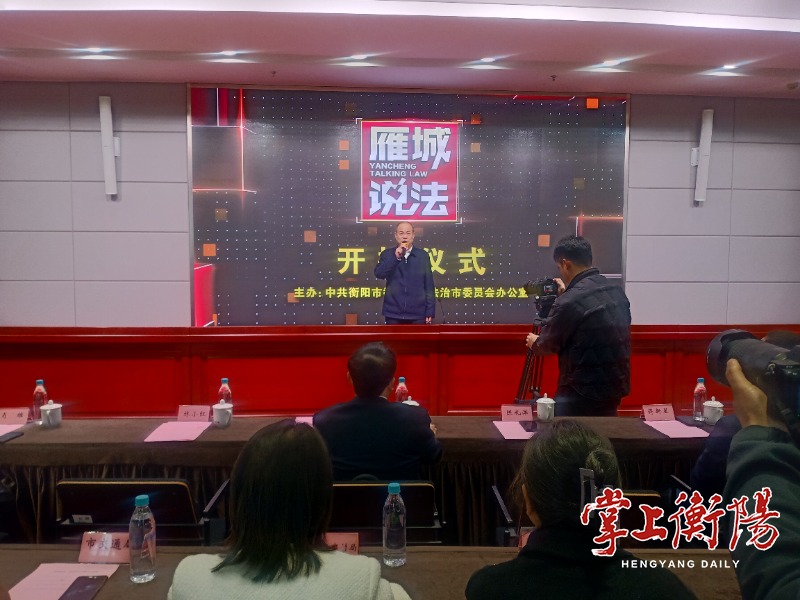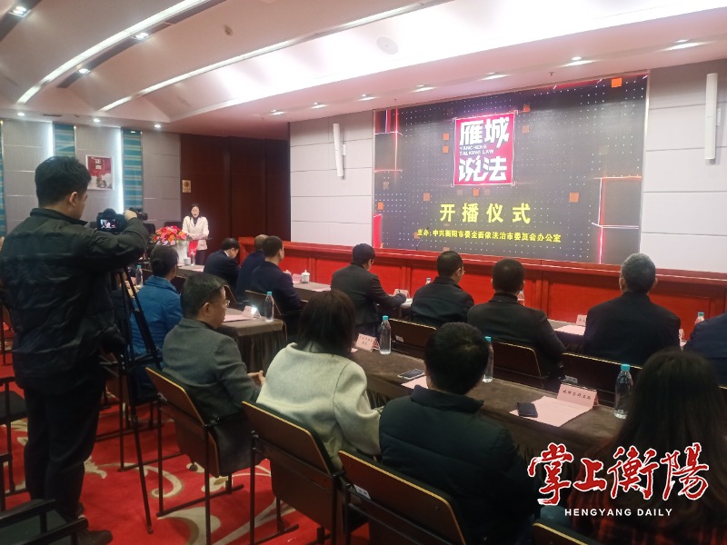 1月12日,《雁城说法》普法栏目开播仪式在市广电中心举行。市委常委、市委政法委书记陈礼洋宣布《雁城说法》普法栏目正式开播。