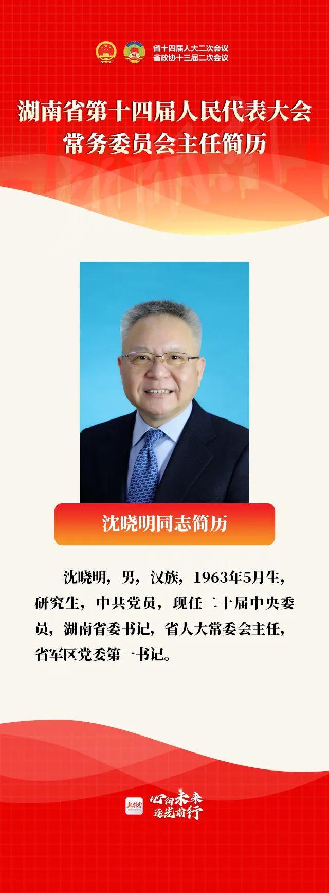 28日上午,湖南省十四届人大二次会议举行第三次全体会议。大会选举沈晓明为湖南省第十四届人民代表大会常务委员会主任。