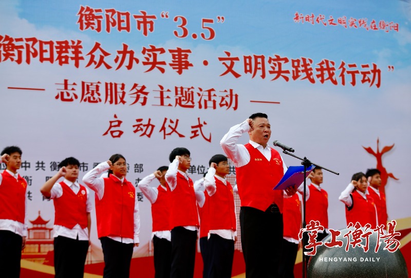 3月4日上午,衡阳市“3·5学雷锋,衡阳群众办实事,文明实践我行动”志愿服务主题活动启动仪式在雁峰区岳屏广场举行。市人大常委会副主任、市总工会主席王东文宣布活动启动。